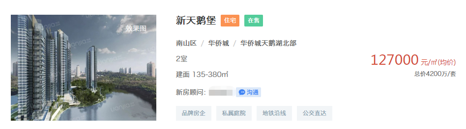 在新房供应上,华侨城片区可售的住宅项目十分稀缺。
