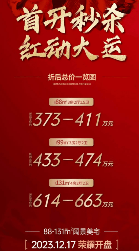 据悉,泰瑞府今起(12月12日)诚意登记,将于12月17日开盘,开盘折扣约9折,折后单价约折后4.3万起,最低总价373万起。