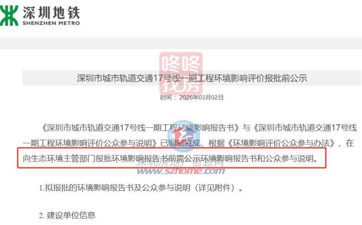 3月2日,17号线一期工程环境影响评价报批前公示。