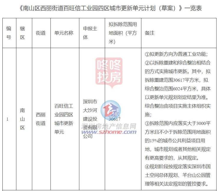 4月25日,《南山区西丽街道百旺信工业园四区城市更新单元规划(草案)》及周边片区道路实施深化对外公示。
