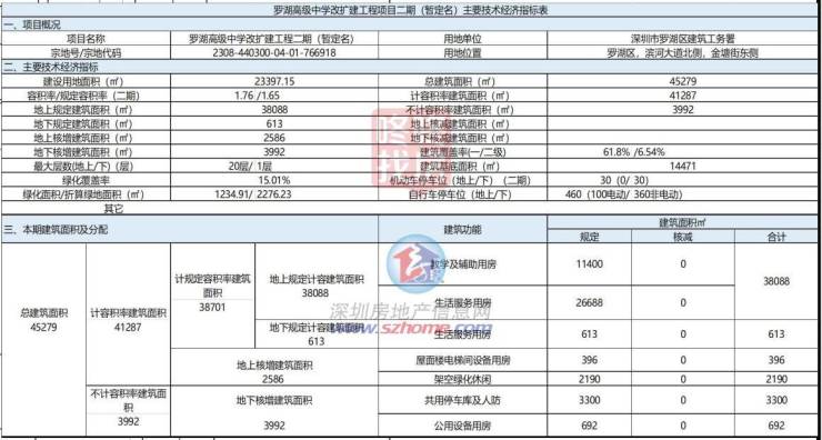 近日,深圳市罗湖高级中学改扩建工程项目(暂定名)《建设工程规划许可证》及总平面图对外公告。