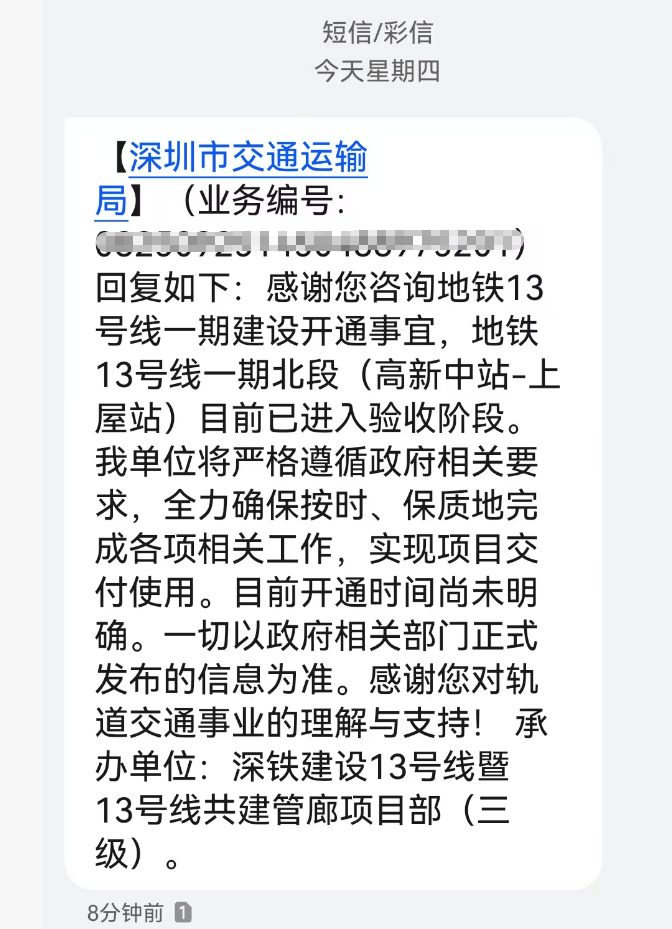 而交通运输局方面也表示:13号线一期北段目前在验收阶段,但开通时间尚未明确。