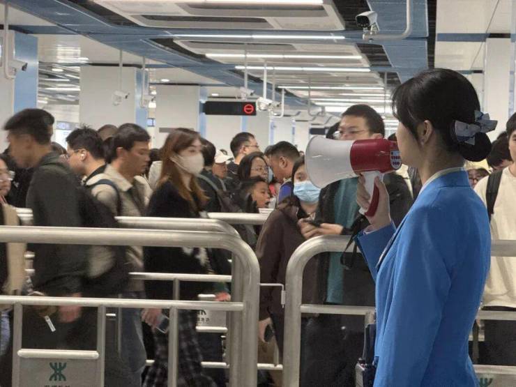 对此,深圳地铁立即制定客流优化措施,并于次日起实施。为避免客流交叉对冲,通过换乘客流分区管理、绕行引导、调整扶梯方向等措施提升乘客通行效率,防止关键点位拥堵聚集。同时,安排员工、保安、义工共54人投入现场服务,全面加强客流引导与安全管控。