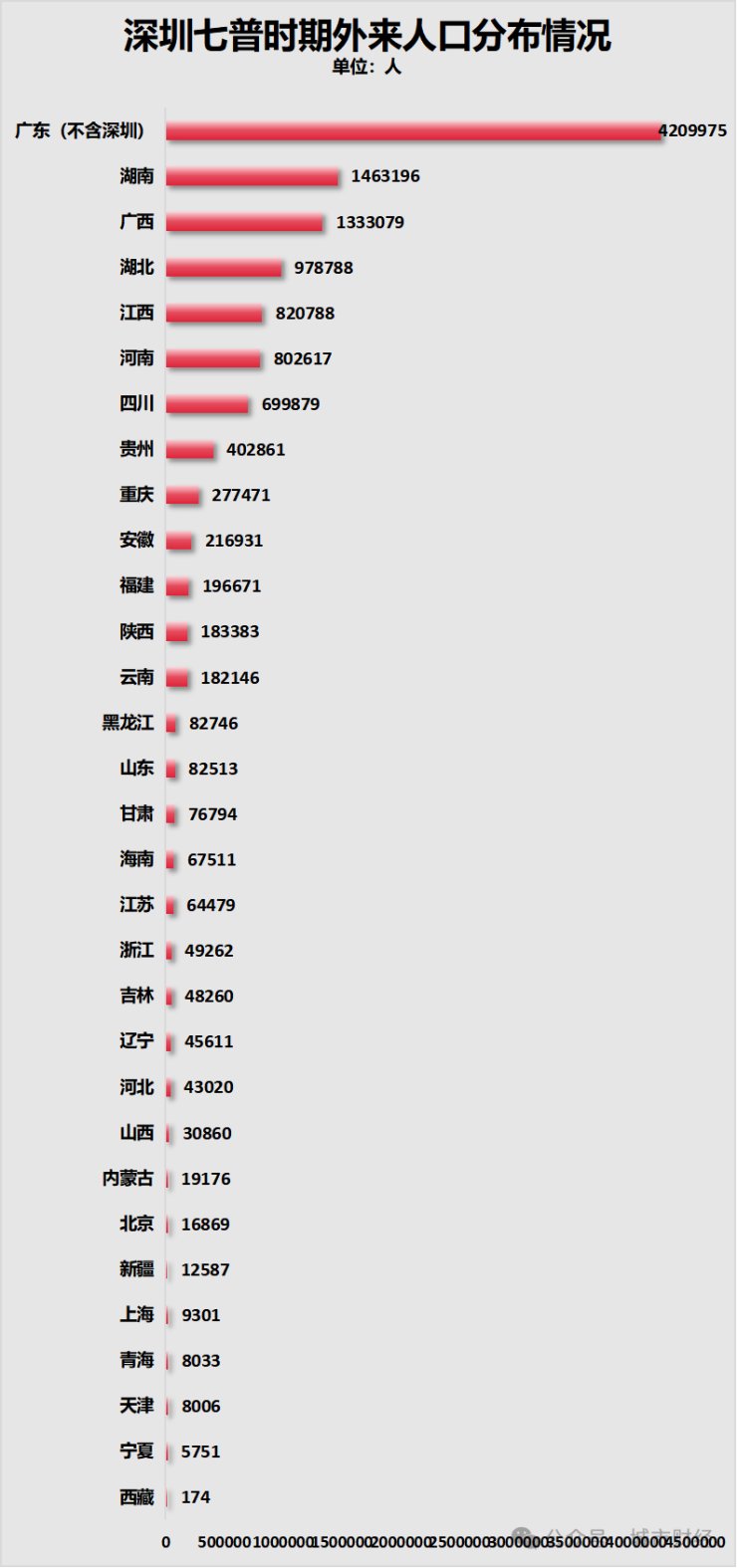 外省人口第二多的地区,和深圳一样,也是广西,接近一百万。河南第三,湖北第四,江西第五。