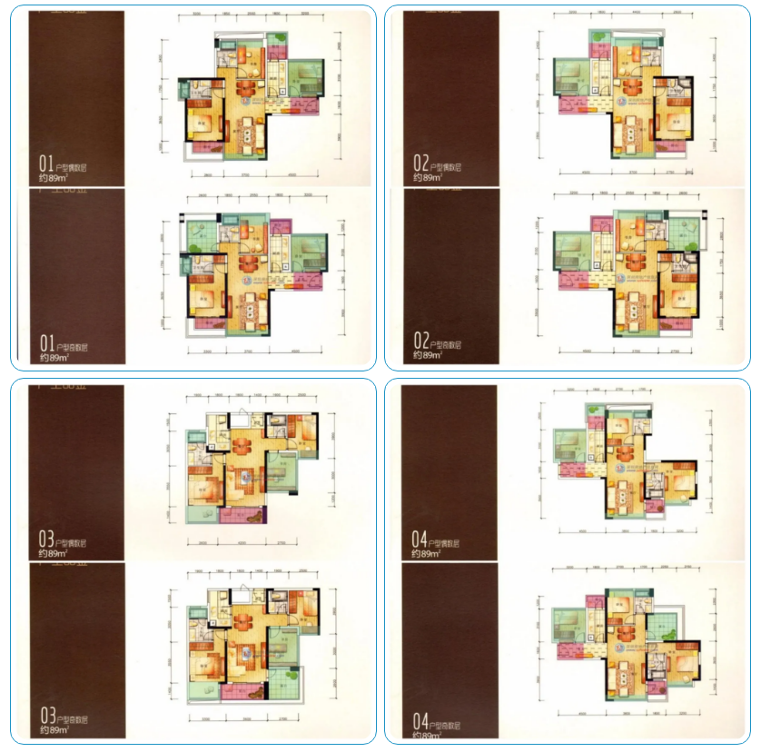 皇后道主力面积是89平三房,一共有7个户型,2梯四户,每个户型都有各自特色,户户朝南,部分特殊户型可做4+1房。