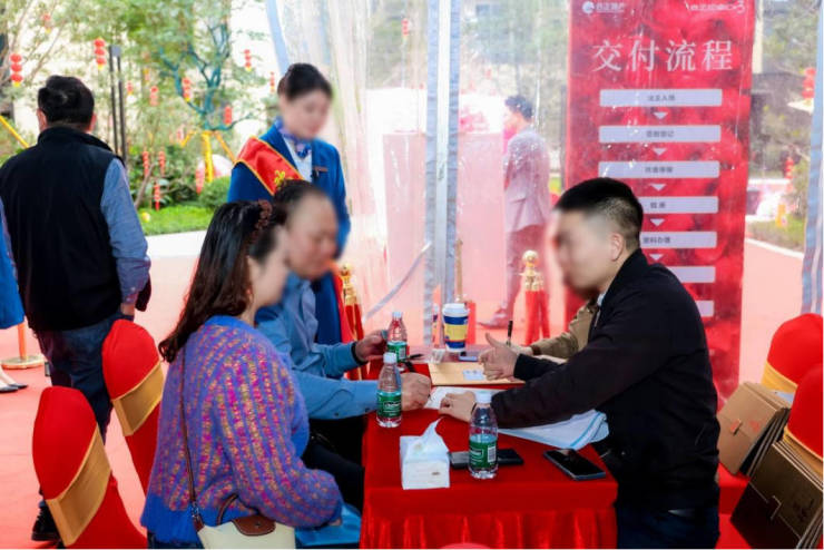 交付当日,现场处处洋溢着温馨与喜庆的氛围。从筹备定制入伙通知书、再到当天的礼序迎宾、现场的手续办理,以及工作人员一对一的全程陪同。充满仪式感的入伙家书,细致周到的服务,梦幻唯美的拍照留影墙,精心准备的新家布置,让业主从归家前就感受到家的温暖与幸福。