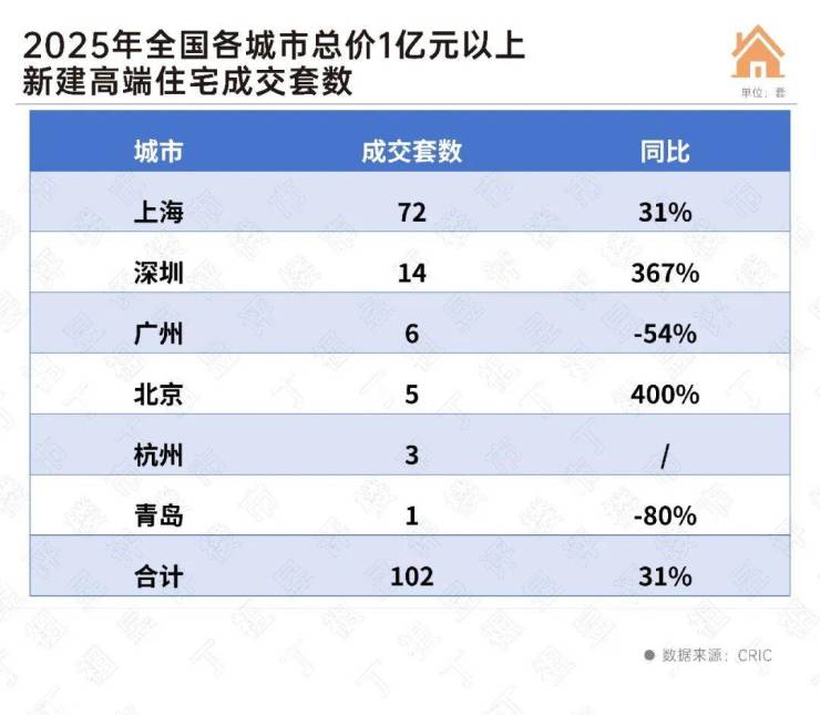 从新房市场看,2025年全国过亿豪宅成交总量已“破百”。