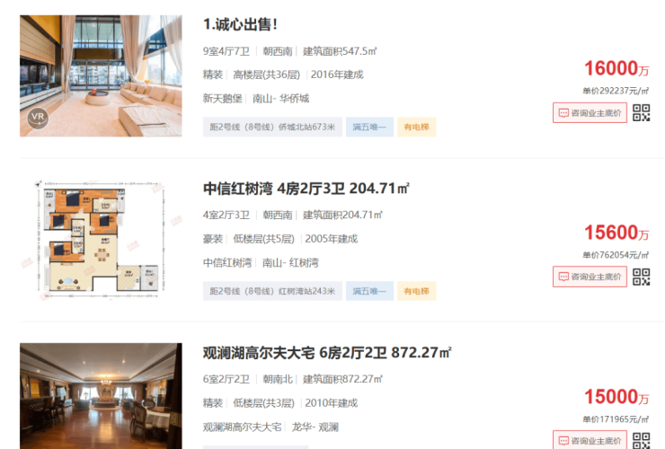 除了上海之外,深圳二手过亿豪宅挂牌也在35套左右,最贵的一套挂牌价1.6亿元。
