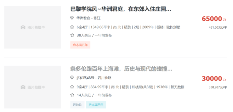 比如上海,链家上就有37套过亿豪宅被挂出,最贵的一套独栋别墅挂牌价6.5亿,还有一套老洋房挂牌价3亿元,此外还有汤臣一品、古北壹号、翠湖天地等耳熟能详的楼盘。