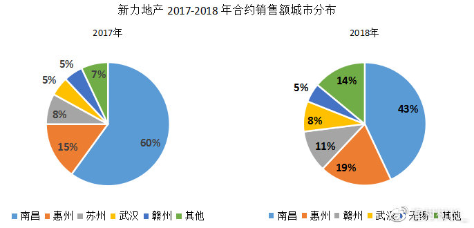 而从新力过往销售历史来看,公司的收益占比过度依赖江西省。公开资料显示,2018年新力在江西地区的销售额达到了539亿元,占总销售额的59%。