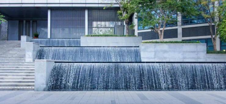 园林地面广场、景墙、台阶、花池等位置的石材,全部从仿石砖升级为全系石材。石是园林的骨架,承载空间的质感与温度,因此小区入户大门选用了造价昂贵的黑金沙石材,景墙用葡萄牙金米黄石材,再以夜里雪花岗岩铺设地面,营造出一种典雅大气的归家仪式感。