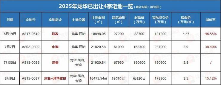 刚刚(8月8日),龙华A815-0037宅地被深业+龙华建投联合体以17.89亿总价拿下。