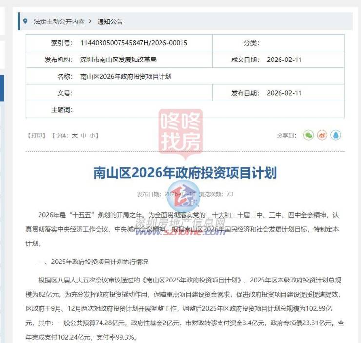 近日,南山区发展和改革局公布了2026年政府投资项目计划,计划显示,全年拟安排项目452个。