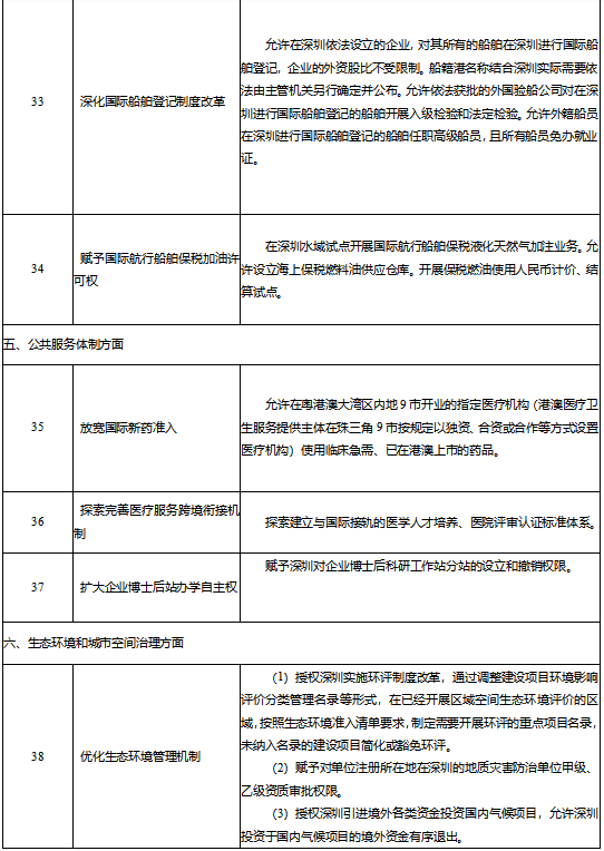 同时,《深圳建设中国特色社会主义先行示范区综合改革试点首批授权事项清单》在国家发改委官方网站发布: