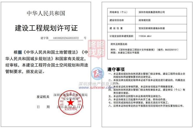 此前,深铁机场东车辆段项目(深铁阅海境花园)1-4期《建设工程规划许可证》及总平面图对外公布。