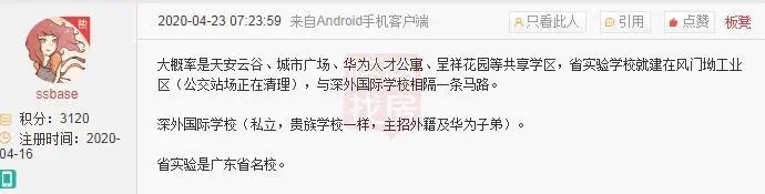 网友@ssbase表示,大概率是天安云谷、城市广场、华为人才公寓、呈祥花园等共享学区,省实验学校就建在风门坳工业区(公交站场正在清理),与深外国际学校相隔一条马路。