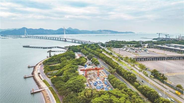 近日,在深铁集团承建的深圳地铁13号线二期(南延)工程日出剧场站右线盾构接收现场,“粤冶号”盾构机精准破壁、顺利进驻钢套筒,标志着该站点右线实现洞通,为线路建设按下“加速键”。日出剧场站作为13号线二期(南延)工程的第3座车站,南接歌剧院站、北连深圳湾口岸站,是地下四层岛式“哑铃状”车站。图为日出剧场站航拍图。