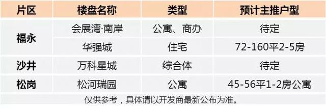 表2:福永、沙井、松岗下半年潜在计划入市项目