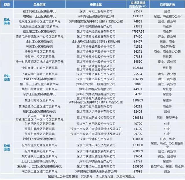 据统计,福永、沙井、松岗街道历年获批的含住宅或商业的城市更新单元计划有超30个,其中有的项目已建成入市或待入市。