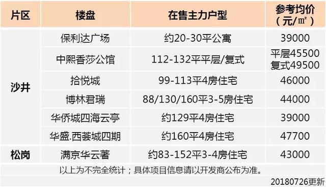 表1:福永、沙井、松岗在售项目