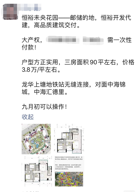 且户型图也同时曝光,为90平左右3房单位,均价在3.8万/平,需要一次性付款。