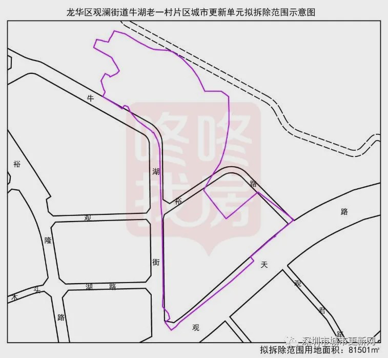 牛湖老一村片区更新项目位于观澜街道,裕昌路(兴业路)以北、启明街以南、老一老二村界以东的围合区域。