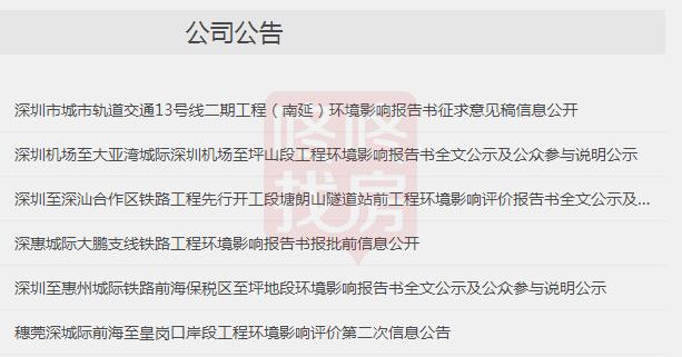 近日,深圳地铁集团官网陆续公布了深圳5条城际铁路线环评报告全文,陆续进入报批前公开阶段。
