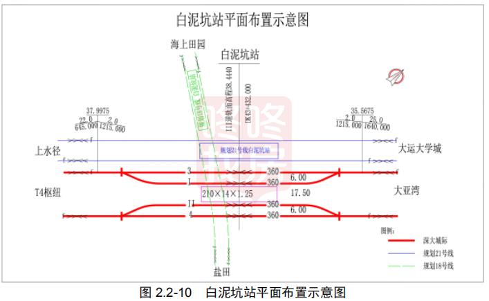 全线设站 11 座,其 中,枢纽站和换乘站 10 座,分别为 T4 枢纽、机场东、石岩中心、龙胜、民治北、五 和、白泥坑、大运、坪山、聚龙,普通站 1 座,为黄麻布,均为地下站。