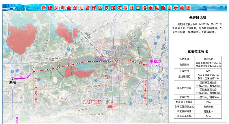 本项目从南山区的西丽站开始,经过南山、龙华、福田、罗湖、龙岗、 坪山,最终至深汕合作区,可覆盖原厦深铁路尚未覆盖到的福田-罗湖片区, 同时也是深圳与深汕特别合作区间湾区城际通道的重要组成部分。