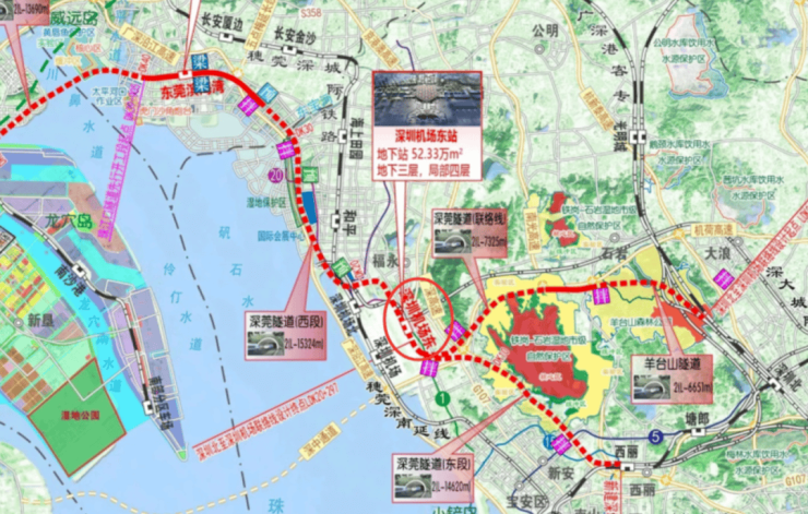 据公开资料显示,深圳机场东站项目规划为全地下站,采用高效的交通设施布局,将列车运行产生的噪音和振动限制。在地下空间内以保护周边居民的生活环境和提高乘客的舒适度,全地下站配以高效率的进出站系统,确保旅客快速、顺畅地进出车站。上楼可搭乘飞机、下楼可换乘高铁和地铁,旅客所有中转可在5分钟内完成。