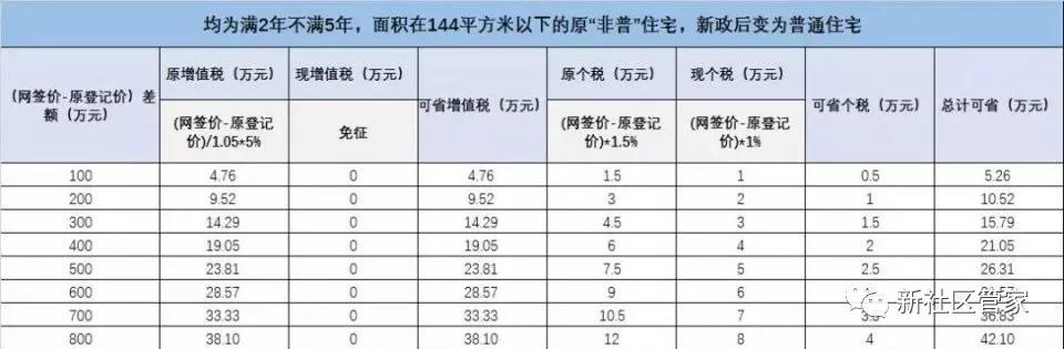 之前一套120平米,市场价1000万,原价300万的房子。按照之前南山高于490万满两年的要缴差额增值税,增值税大约要缴37万左右,按照新的144平米以下满两年免征增值税,就可以免征37万增值税。(来源:@房圳探)
