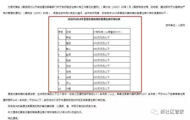 3 深圳各区域过户指导价普通住宅的限定标准,详见下表。