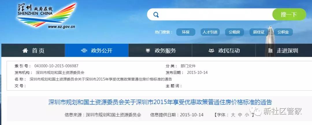 从2015年至今,深圳的普通住宅价格标准没有再调整过。