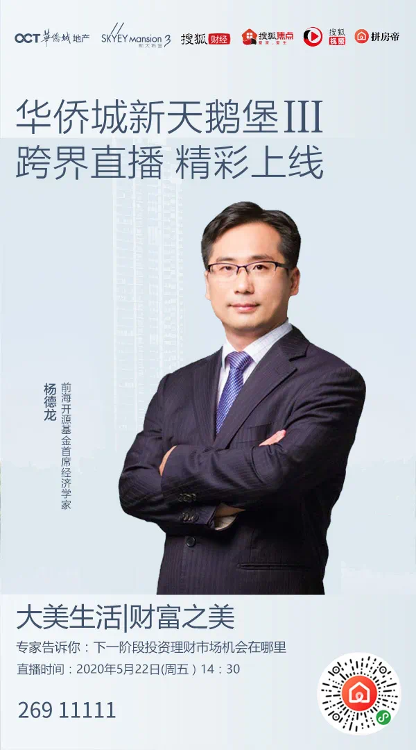 基于此,华侨城新天鹅堡三期“大美生活”直播季,将于本周五力邀深圳前海开源基金董事总经理、首席经济学家、证券业协会首席经济学家委员会委员、央视财经频道特约评论员杨德龙先生做客直播间,阐释非常时期的投资智慧,解读未来市场局势与投资机会。