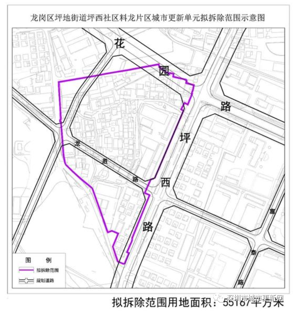 坪西社区料龙片区城市更新单元坪地街道龙陵南路以北、澳头以东、乌料龙一巷以南、坪西中路以西。拟拆除范围用地面积55167㎡。该城市更新单元拟更新方向为居住等功能。
