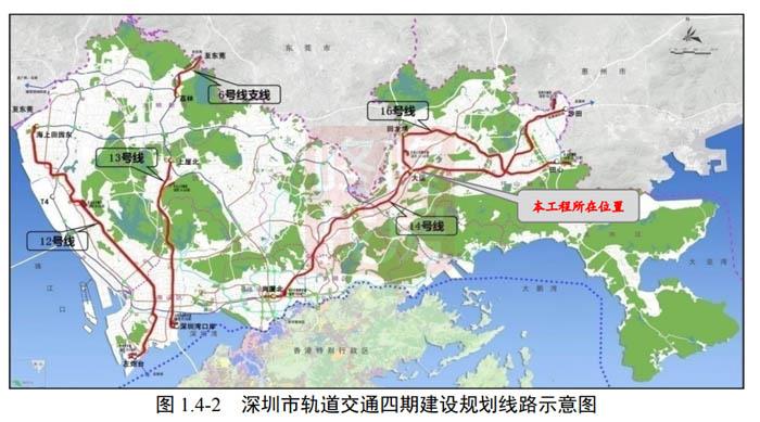 工程为地下四线换乘轨道交通综合枢纽,3 号线属于轨道交通二期工程,已建成通 车并通过竣工环保验收。14 号线、16 号线为《深圳市城市轨道交通第四期建设规划 (2017-2022)》建设项目,其环评及批复情况如表 2所示。