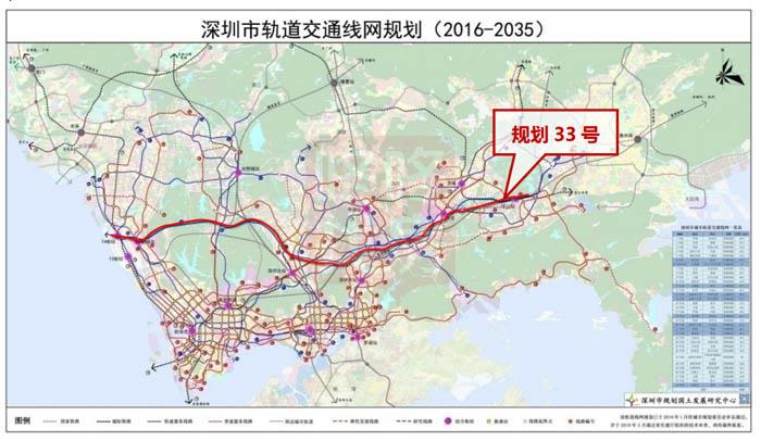 规划33号线设置大运站与既有3号线、14 号线、16号线换乘。目前已经纳入深圳市五期建设规划方案研究,33号线制式选择、运营模式等正在研究中。