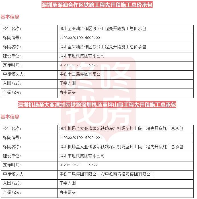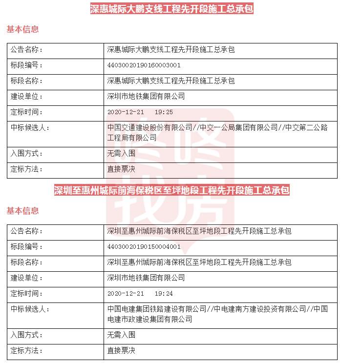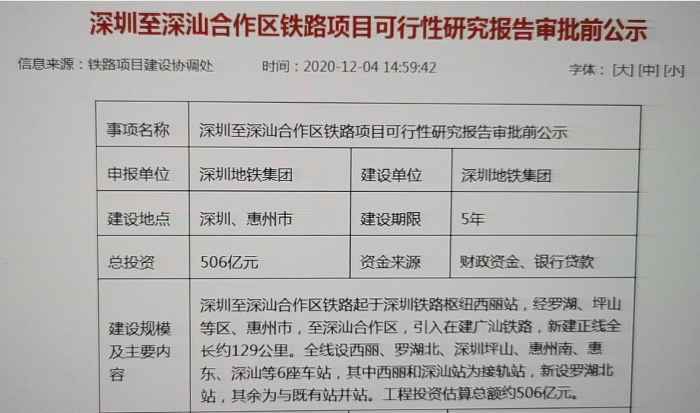 早在11月19日,深圳公共资源交易中心发布了该5条线的工程监理,并首次给出了深惠城际深圳段、深惠城际大鹏支线、穗莞深城际三期、深汕高铁先开段这四条城际线路,监理工程的准确开工、竣工时间。