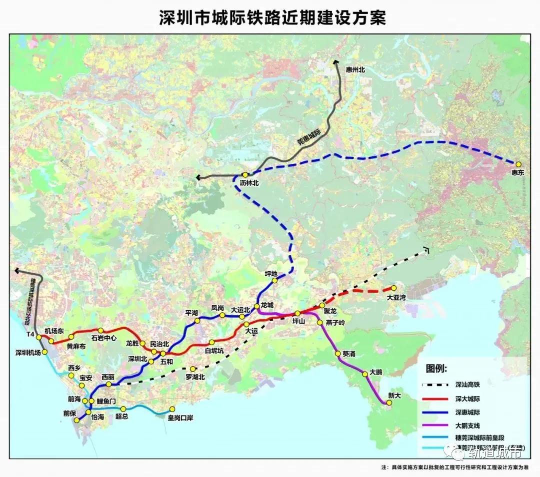 分别为深惠城际大鹏支线、深大城际深圳机场至坪山段、深惠城际前海保税区至坪地段、穗莞深城际前海至皇岗口岸段、深汕高铁先开段。