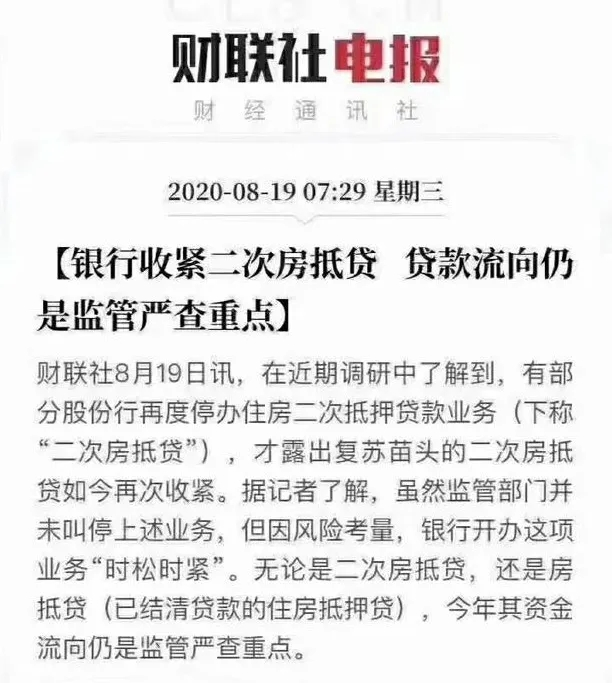 8月,时松时紧的二次房抵贷,也被部分喊停。