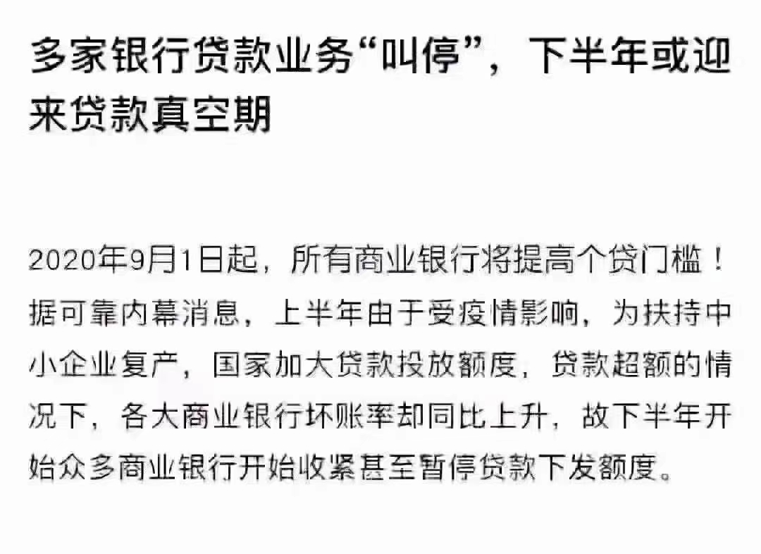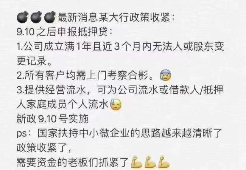 当时通报,未发现支小再贷款信贷资金流入楼市情况,有客户先全款买房,再抵押申请经营贷的情况,但规模很小。风波过后,市场恢复平静一段时间,8月开始有部分银行进一步收紧二次房抵贷,停办该业务,严查资金流向,银保监会更是对两大国有行因资金违规入楼市等原因开出巨额罚单。监管主线很坚决:“坚决纠正资金流向房地产市场”,想动歪心思的,该歇歇了。01审批条件严苛公司满1年+房子满半年,有的要求两年事发有因,据说各大商业银行坏账率上升,故下半年多家商业银行开始收紧甚至暂停贷款下发额度。