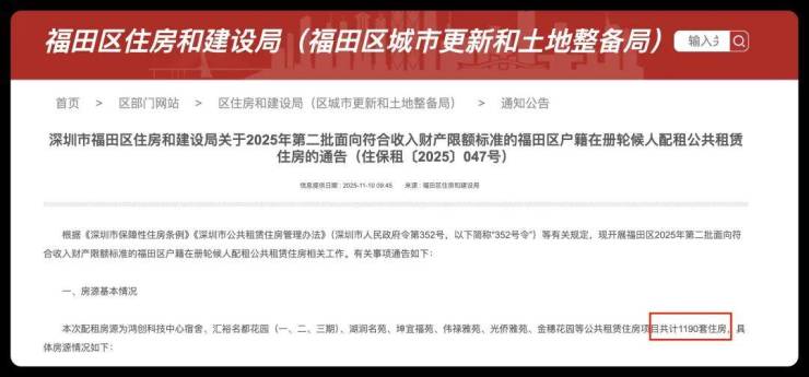 据福田区住建局公示,本次配租房源为鸿创科技中心宿舍、汇裕名都花园(一、二、三期)、湖润名苑、坤宜福苑、伟禄雅苑、光侨雅苑、金穗花园等公共租赁住房项目共计1190套住房。