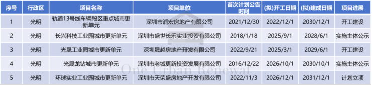 龙岗区共12个项目入选。其中,有2个项目计划立项,4个项目取得规划批复,2个项目实施主体公示,4个项目开工建设。