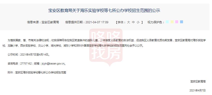 事件:4月7日,宝安区教育局公布海乐实验学校等七所公办学校招生范围。
