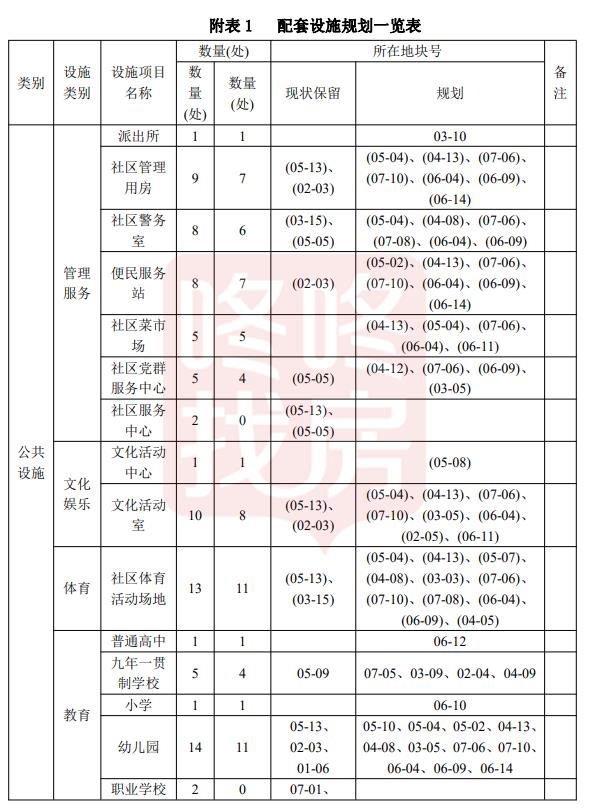 新规划有普通高中1处、九年制一贯制学校4处、小学1处、幼儿园11处,综合医院2处、社康4处、老年日照中心8处。