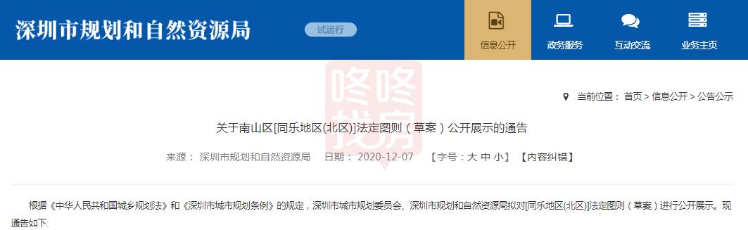 12月7日,深圳市规划和自然资源局发布南山区[同乐地区(北区)]法定图则(草案),南山同乐规划图正式出炉!