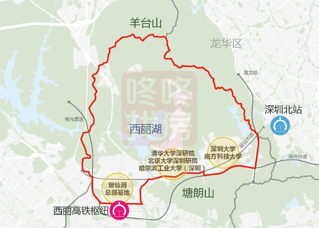 同乐北区+高新北区+西丽高铁新城+留仙洞总部+西丽湖科教城