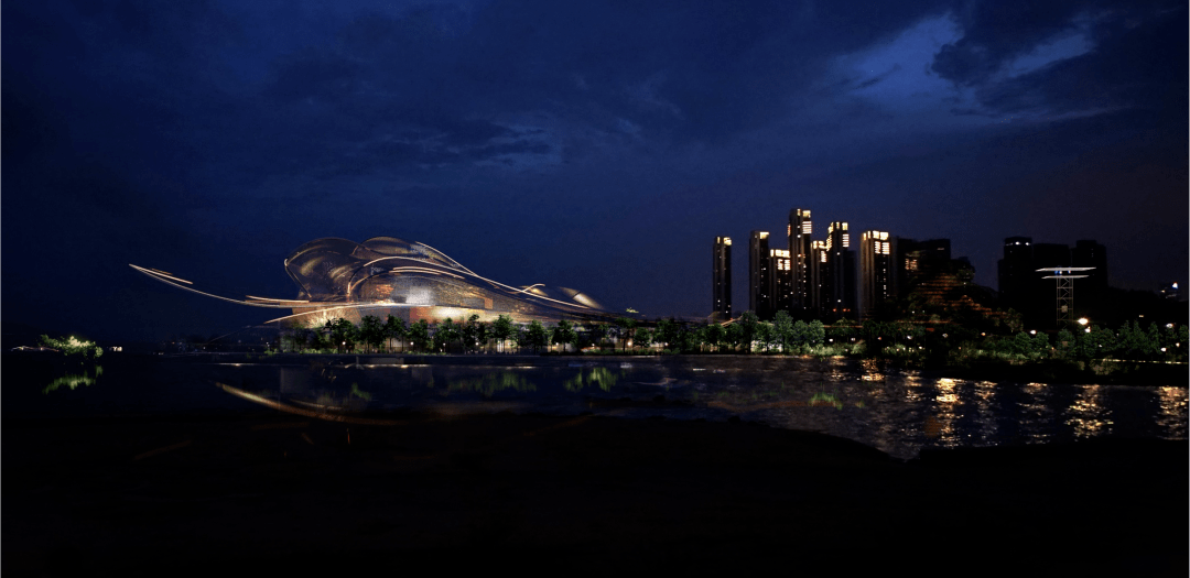 方案以抽象和具象相结合的方式回应场地和命题,从城市、山、海多维角度思考,以音乐与大海的相遇、建筑拥抱音乐、拥抱大海为主要创意,极具原创性,同样很值得期待。