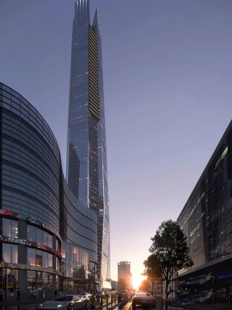 据了解,项目总用地面积3.6万平方米,规划双塔布局,建筑高度约395米,定位为集办公、商业、酒店、文化、交通市政、公共服务等功能于一体的企业总部、国际组织和机构服务平台。
