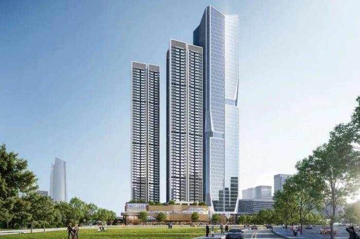 河套公馆总建筑面积近26万㎡,涵盖甲级写字楼,2栋可售人才房和购物中心裙楼。